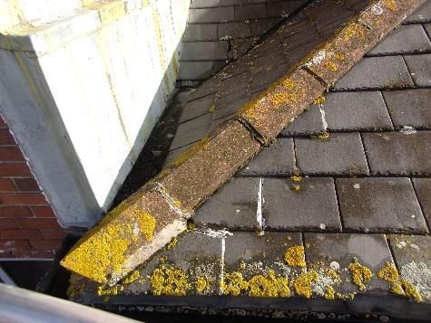 - Missing pointing and deteriorating mortar at ridge/verge areas
