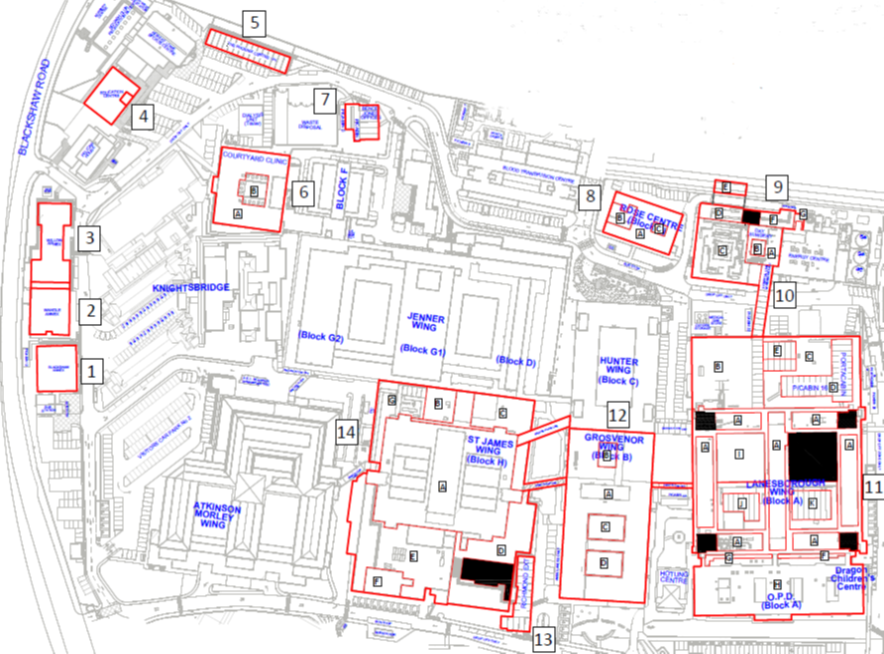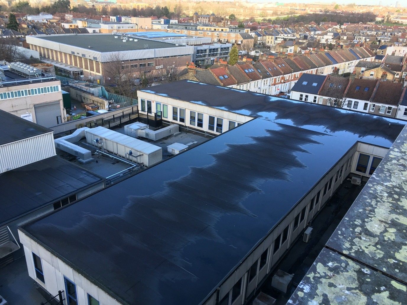 St George’s Hospital in London, a large healthcare facility with buildings dating from the 1970s onwards, required a comprehensive roof condition survey. The project covered multiple flat roofs across various building structures, including solid concrete decks, metal decks, and newer modular timber frame buildings.
